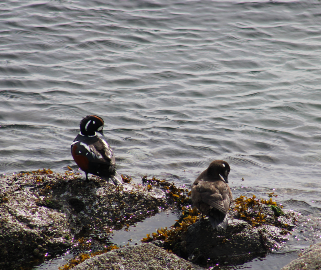 We spent most of our days watching the song sparrows, but there is so much wildlife here to get distracted by… I had one totally unexpected encounter. Ebba and I decided to split up to watch a specific bird and I suggested she move to a more interesting part of the island while I stay in a rather boring meadow. I was at the highest point on the island, probably 20m above sea level, and walked between a few shrubs to stand in a grassy meadow expecting to see nothing. Suddenly I realized I WAS NOT ALONE! Something was following my path. Then I made direct eye contact with a river otter a few meters behind me. They don’t have great vision above water and I think we were equally surprised to see each other- I didn’t realize how far up they’ll climb on land. I didn’t even have a chance to take a picture he scampered away so quickly.